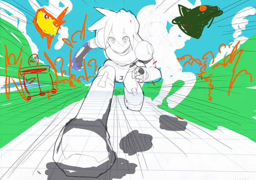 色々考えてました。ロックが走っててそれをみんながついて来る。みたいな